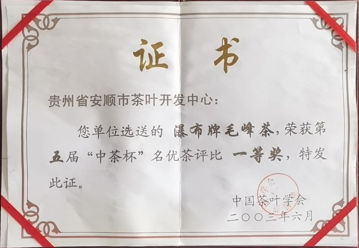 榮譽(yù)資質(zhì) 瀑布牌毛峰茶榮獲第五屆“中茶杯”名優(yōu)茶評比一等獎