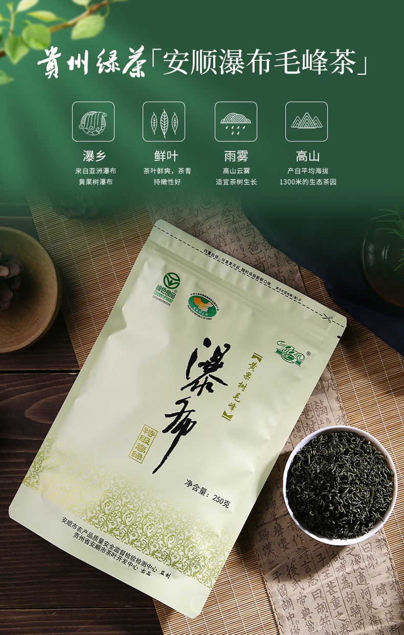 貴州綠茶 安順瀑布茶辦公茶2021新茶 特級高綠250g袋裝