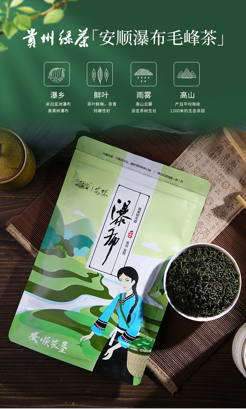 貴州綠茶 安順瀑布茶辦公2021新茶 一級高綠200g袋裝