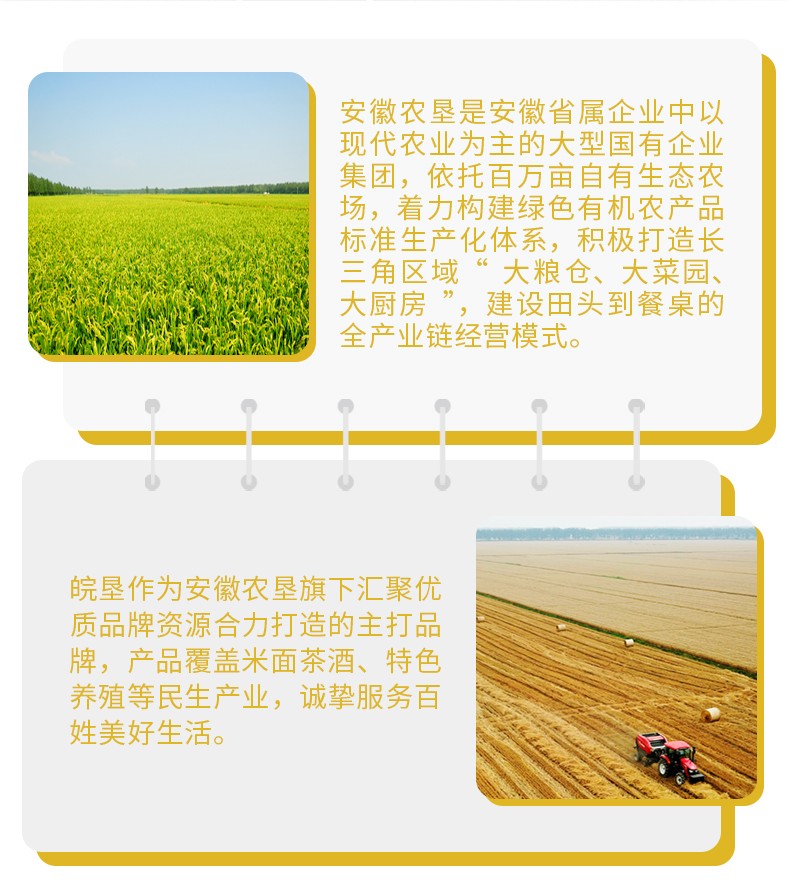 安徽省農墾集團有限公司是1998年經省政府批準由原省農墾農工商聯合總公司(前身為省農墾廳)改制成立的國有獨資公司,原由省委、省政府直接管理,2004年納入省國資委監管序列,與安徽省農墾事業管理局系一個機構、兩塊牌子、一套班子,系經濟建設與社會事業同步發展的綜合性系統。省農墾集團是安徽省規模最大的國有現代農業企業,2012年末,資產總額近70億(不含土地),下轄全資子公司42個,控股子公司36家,境外子公司1個;其中農、茶、果場20個,主要分布在皖南4個、沿江2個、沿淮及淮北14個,海外農場3個,土地面積7.5萬畝;專業公司6個、建筑公司1個。墾區總人口12.2萬人,其中,職工2.65萬人,離退休3萬人;擁有土地面積100萬畝,其中,耕地45萬畝,林地11.8萬畝,茶果園7萬畝,養殖水面1.5萬畝。墾區擁有農業科研所15個,科技人員2300多人。