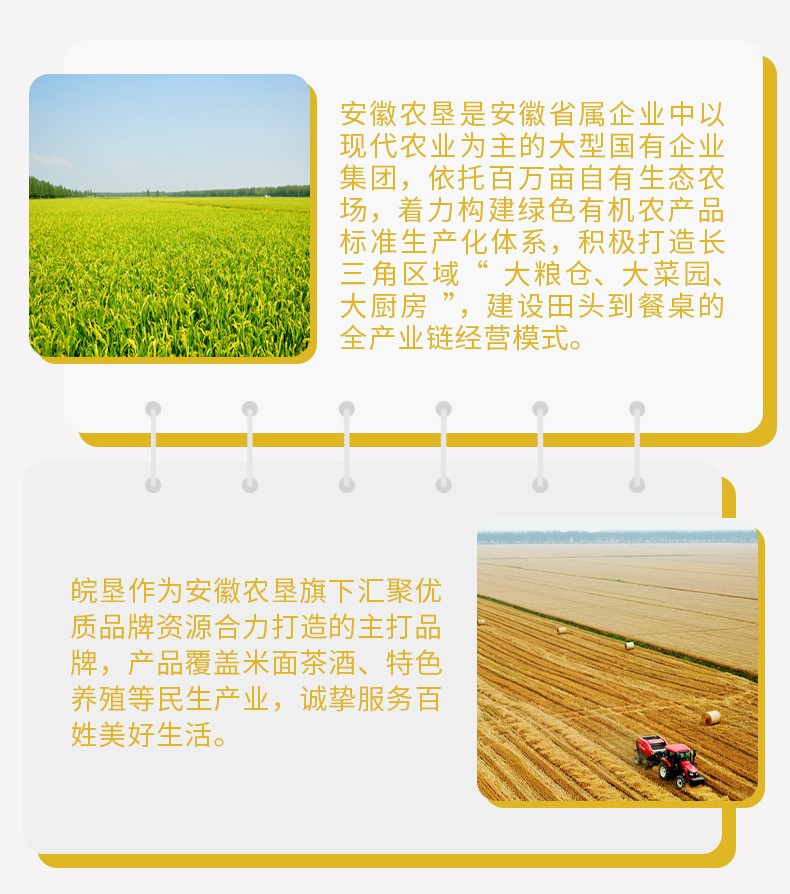 安徽省農墾集團有限公司是1998年經省政府批準由原省農墾農工商聯合總公司(前身為省農墾廳)改制成立的國有獨資公司,原由省委、省政府直接管理,2004年納入省國資委監管序列,與安徽省農墾事業管理局系一個機構、兩塊牌子、一套班子,系經濟建設與社會事業同步發展的綜合性系統。省農墾集團是安徽省規模最大的國有現代農業企業,2012年末,資產總額近70億(不含土地),下轄全資子公司42個,控股子公司36家,境外子公司1個;其中農、茶、果場20個,主要分布在皖南4個、沿江2個、沿淮及淮北14個,海外農場3個,土地面積7.5萬畝;專業公司6個、建筑公司1個。墾區總人口12.2萬人,其中,職工2.65萬人,離退休3萬人;擁有土地面積100萬畝,其中,耕地45萬畝,林地11.8萬畝,茶果園7萬畝,養殖水面1.5萬畝。墾區擁有農業科研所15個,科技人員2300多人。