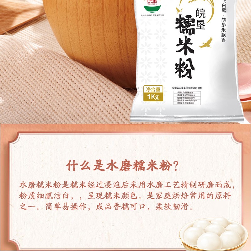 皖墾水磨糯米粉家用2斤純糯米湯圓年糕糍粑粉